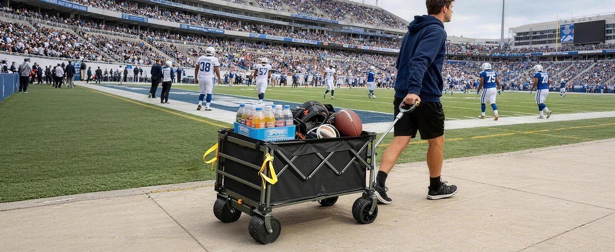 Unlike a traditional wagon, it can easily navigate rough terrain, carry heavier loads, and often includes features like foldable frames, speed controls, and rechargeable batteries. It’s designed for convenience, especially during camping trips, gardening, beach outings, and outdoor work.