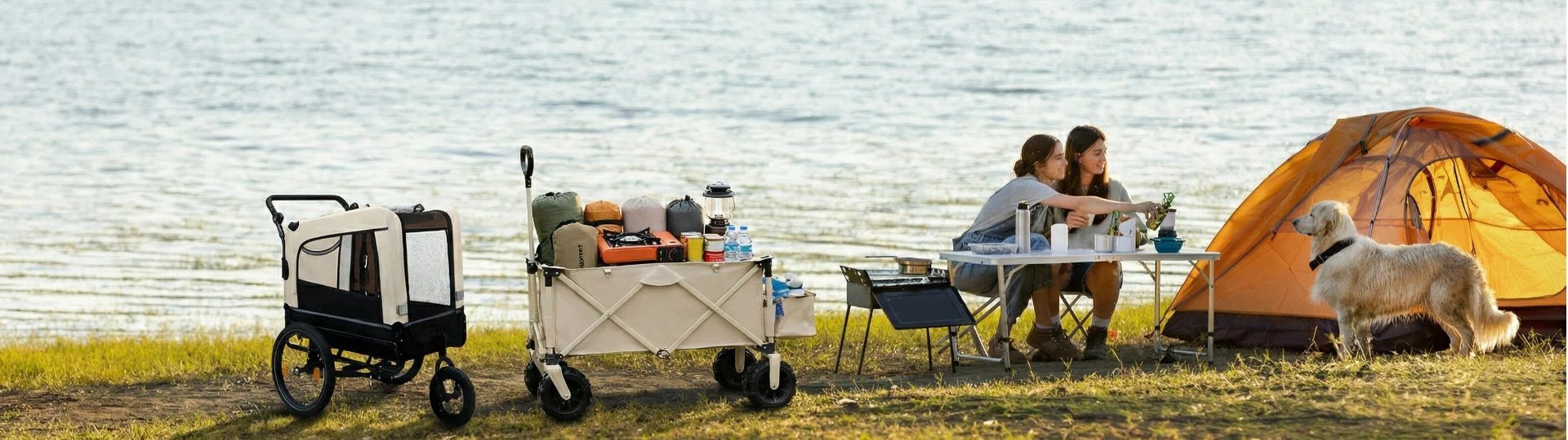 All Terrain Buggy Cart PT2220 Stroller Wagon, a versatile stroller wagon designed to be the perfect companion for pet owners and outdoor enthusiasts. This innovative vehicle effortlessly transforms between a secure pet trailer and a spacious cargo wagon, providing comfort, safety, and convenience on any terrain.