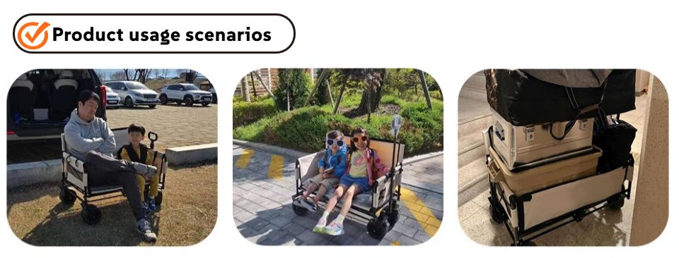 Functions as a seating wagon, cargo carrier, and beach cart, reducing the need for multiple products.