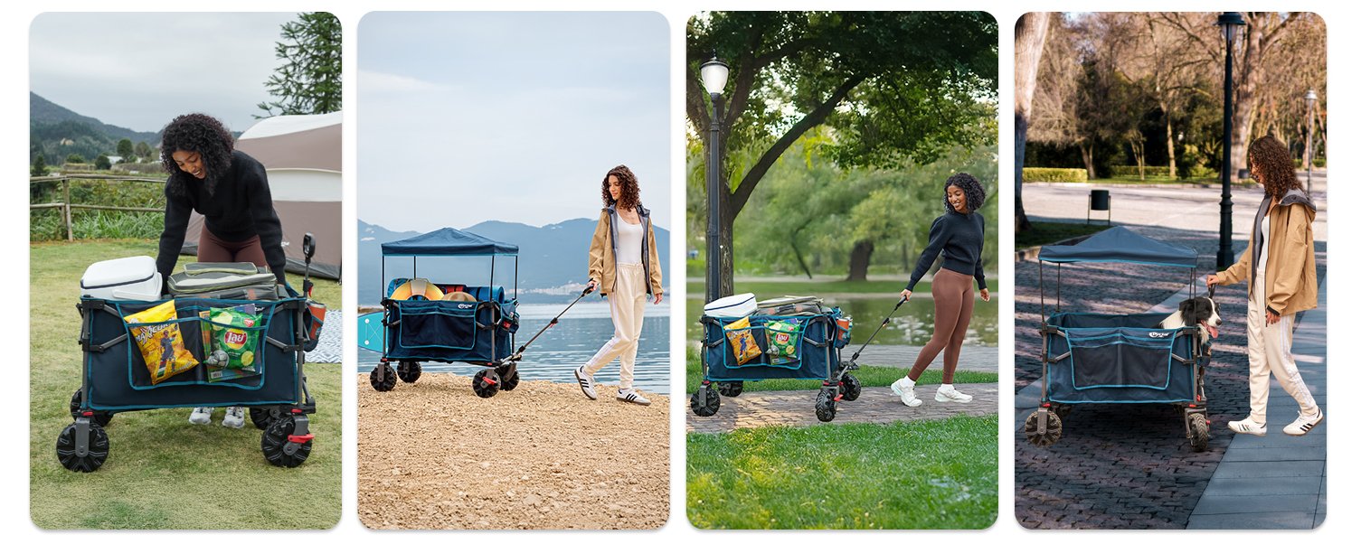 A folding wagon with removable canopy is the answer. Combining the convenience of a collapsible cart with the protection of a sun and rain shield, these wagons have become essential gear for families, pet owners, and adventurers alike. Let's explore why they are the perfect choice for your next outing.