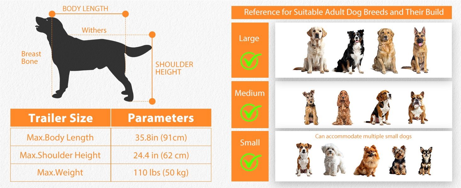 Your dog should be able to stand, turn around, and lie down comfortably. Measure before you buy. A good bike trailer supplier will provide clear size charts to help you decide.