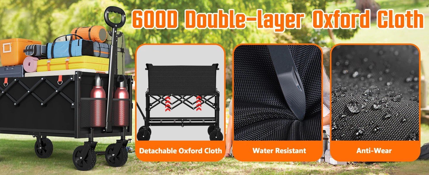 Heavy-Duty Frame – Constructed with a sturdy steel frame and rugged 600D wear-resistant Oxford fabric, this wagon is built for long-lasting durability and reliable performance.