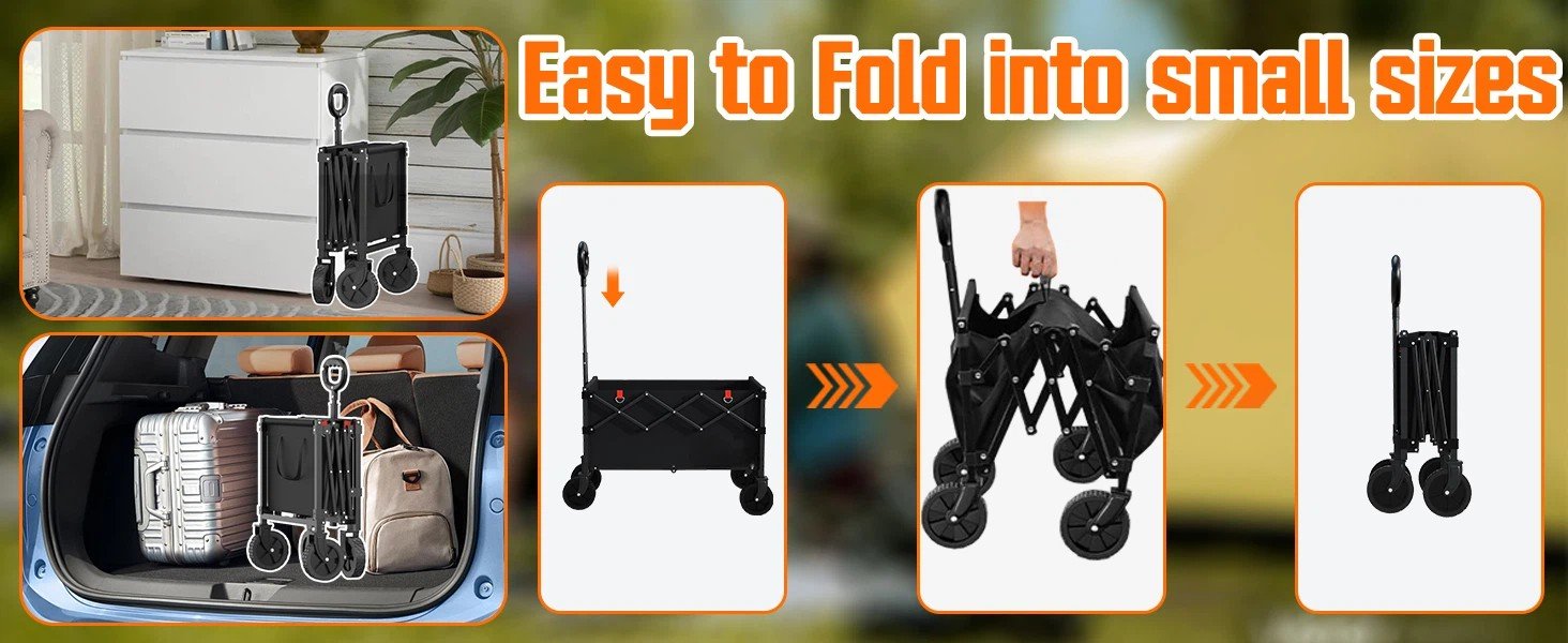 Compact Folded Size – Designed for easy storage, the wagon folds down quickly and neatly, saving valuable space in garages, car trunks, or closets.