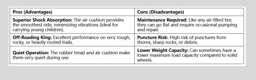 Pneumatic wheels are the same concept as bicycle or car tires—they are filled with air. While less common on collapsible wagons, they offer significant comfort advantages.