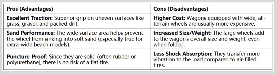 These are the most popular wheels on heavy-duty collapsible wagons and are designed for versatility across multiple surfaces. They are typically wider and thicker than standard wheels.