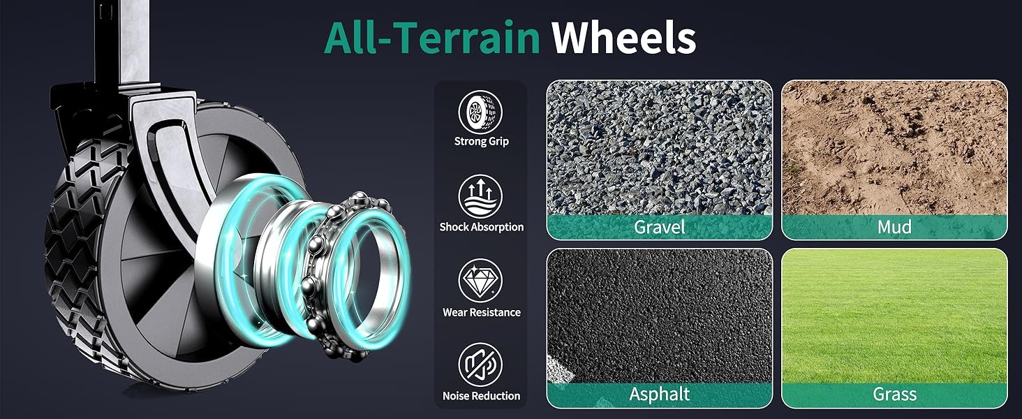 Whether you're rolling across grass, gravel, sand, or pavement, 360° wheels adapt naturally to the surface. The ability to pivot freely means less resistance and a smoother ride, regardless of where your day takes you.